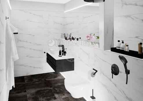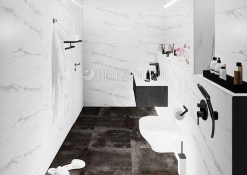 Die Wohnung, mit einer Fläche von 90m2, befindet sich im Erdgeschoss und ersten Stock eines derzeit im Bau befindlichen Wohngebäudes mit insgesamt 6 Wohneinheiten, nur 150m vom Meer entfernt! Im Erdgeschoss, mit einer Fläche von 48m2, befinden sich ein Eingangsbereich, Badezimmer, Küche, Essbereich und ein Wohnzimmer mit Zugang zu einer Terrasse (7,40m2). Im ersten Stock, mit einer Fläche von 42m2, befinden sich 2 Schlafzimmer, jedes mit eigenem Badezimmer und Zugang zu einem gemeinsamen Balkon mit einer Fläche von 7,40m2 und Blick auf das Meer! Sie zeichnet sich durch ein modernes Design, hochwertige und erstklassige Bauweise, Verwendung von hochwertigen Materialien, eine gute Raumaufteilung, Aluminiumfenster, elektrische Rollos und Fliegengitter, Bodenbeläge aus Granit 60/120, einbruchsichere Wohnungseingangstür, Haupteingangstür (inotherm) mit einem Smart-Lock-System (Entsperrung mit Fingerabdruck und Code), Fußbodenheizung durch eine Wärmepumpe (Vaillant), und Klimaanlage in allen Räumen aus. Die Wohnung umfasst ca. 60m2 Garten und 1 Parkplatz. Die Immobilie wird nach dem 'Schlüssel in die Hand'-Prinzip verkauft, und der Abschluss der Arbeiten ist für Mai 2025 geplant. Die Mehrwertsteuer ist im Preis enthalten, der Käufer zahlt keine Grunderwerbsteuer.