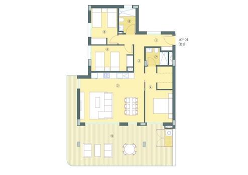 Diese hübschen Appartements verfügen über eine konstruierte Fläche von ca. 119 m² - 144 m² (inklusive Terrassen) mit