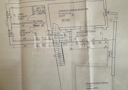 Die Immobilie ist ein klassisches Steinhaus mit einer Wohnung, einem Keller, einer Garage und einer großen Terrasse, die ausreichend Platz zum Genießen bietet.