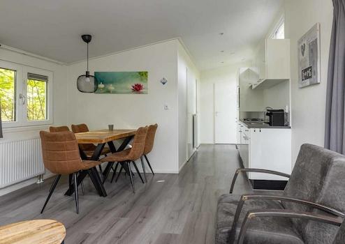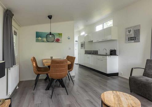 Mit einem komfortablen Essbereich, gemütlichen Sitzmöglichkeiten und passenden Vorhängen ist dieses Haus sofort bewohnbar. Die schräge Decke in Kombination mit den großen Fenstern sorgt für viel Tageslicht und eine geräumige, warme Atmosphäre, in der Sie sich sofort wie zu Hause fühlen werden. Darüber hinaus wurde das Haus kürzlich mit wunderschönen neuen Möbeln ausgestattet, darunter ein Esstisch, Couchtisch, TV-Möbel, Stühle und ein bequemes Sofa.