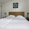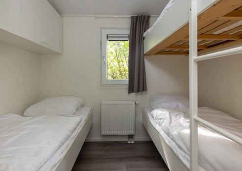 Das zweite Schlafzimmer ist praktisch eingerichtet mit Hängeschränken und drei Betten.