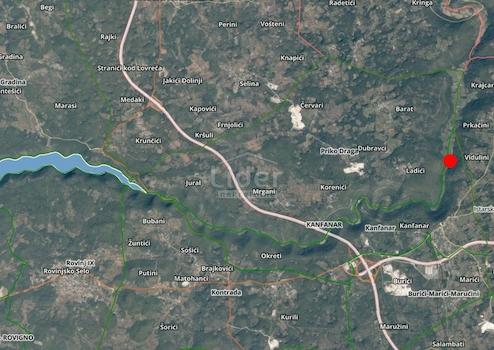 - Das 13.270 m2 große Grundstück liegt in der Nähe des Dorfes Vidulini, Kanfanar. Von Vidulin aus nehmen wir nämlich die weiße Straße für etwa 3,5 km auf einer kurvenreichen Straße, um zum Grundstück zu gelangen.