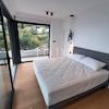 Im Obergeschoss befinden sich drei Schlafzimmer mit jeweils eigenem Bad, zwei davon verfügen zudem über überdachte Terrassen.