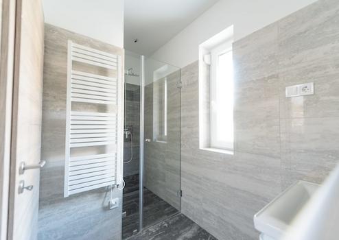 In den Nassräume wie Bad und, Dusche und Gäste-Toilette wurden hochwertigen modernen Fliesen verwendet.
