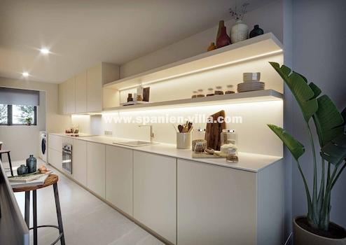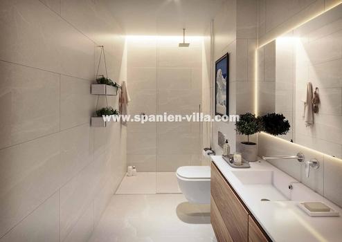 LUXUS-AUSSTATTUNG mit vielen Extras inklusive: Die Küche ist vollständig in hellen Farben möbliert. Hochwertige elektrische Geräte wie ein Induktionsherd, Backofen und eine Abzugshaube von Siemens sind inbegriffen. Die Bäder sind mit Waschtischen aus Holz mit einem oder zwei Waschbecken, Dusche mit bodengleicher Duschtasse und Unterputzarmaturen von Tres ausgestattet. Für alle Räume der Wohnungen wurden großformatige Porzellanfliesen der Marke Saloni ausgewählt. Im Außenbereich werden die gleichen Fliesen in der rutschfesten Version verlegt. Aerothermie-Systeme für Warmwassererzeugung und Fußbodenheizung in allen Räumen. Sicherheits-Eingangstür. Vorinstallation für E-Ladestation.