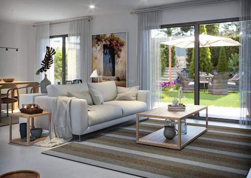 Die Terrassen aller Häuser sind nach Südwesten ausgerichtet und haben einen eigenen Garten, mit Zugang zum schön angelegten, begrünten Gemeinschaftsbereich mit Pool.