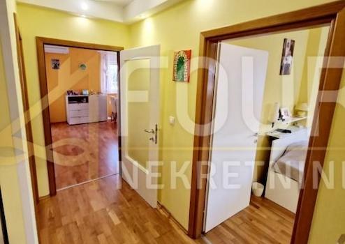 Es besteht aus einem Flur, einer Küche mit Esszimmer und Wohnzimmer, zwei Schlafzimmern und einer geschlossenen Loggia.