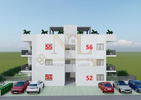 Die Wohnung S2 im Erdgeschoss besteht aus einer Eingangshalle, einem Schlafzimmer, einer Küche mit Wohnzimmer und Esszimmer und einem Badezimmer sowie einem großen Garten.