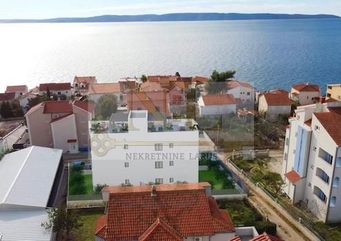 Das Gebäude liegt südseitig in einer Sackgasse in ruhiger Lage mit Blick auf die Inseln Brač und Šolta, etwa 300 Meter vom Meer und Strand entfernt.