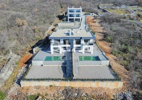 RIJEKA, KOSTRENA – exklusive Doppelhaus-Villa mit Infinity-Pool, Garage, Garten, Panoramablick auf das Meer