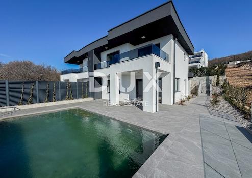 Wir präsentieren exklusiv eine einzigartige Gelegenheit – ein besonderes modernes, eingezäuntes Gebäude in einer ruhigen und exklusiven Privatanlage, in der es nur zwei Villen gibt. Dieses Anwesen ist ein wahres Juwel, eine Kombination aus Luxus, Komfort und wunderschöner natürlicher Umgebung. Jede der beiden Villen dieser exklusiven Anlage bietet Privatsphäre. Das eingezäunte Grundstück, umgeben von Ruhe und Grün, vermittelt ein Gefühl von vollkommenem Komfort und Intimität. Darüber hinaus verfügt diese Wohneinheit über einen Überlauf-Infinity-Pool sowie eine Garage. Die Doppelhaus-Villa wurde sorgfältig entworfen, um jeden Winkel ihrer Fläche zu nutzen. Es besteht aus zwei Etagen und bietet geräumige und funktionale Räume für ein komfortables Leben. Im Untergeschoss gibt es einen Flur, eine Garderobe, ein Arbeits- oder Gästezimmer, ein Badezimmer, einen Abstellraum und ein offenes Wohnzimmer mit offener Küche und Esszimmer. Im Erdgeschoss befinden sich 3 Schlafzimmer, 2 Badezimmer, ein Kleiderschrank, eine Garage und eine Terrasse. Zum Eigentum der Immobilie gehört auch ein 70 m² großer Garten, der sich ideal für die Schaffung Ihrer eigenen Grilloase eignet. Dieses hochwertige Gebäude zeichnet sich durch eine Fülle an Details und hochwertige Materialien aus. Jede Wohneinheit ist mit einer Wärmepumpe, einem separaten Kühlsystem, Klimaanlagen und Fußbodenheizung in allen Räumen ausgestattet. Große Schiebewände aus der Tischlerei Schuco sorgen für viel Tageslicht und einen spektakulären Ausblick auf die Umgebung. Sanitärkeramik von Villeroy & Boch sorgt für einen Hauch von Eleganz, während die Wärmedämmung an der Fassade für Energieeffizienz sorgt. Die Lage dieser Immobilie ist außergewöhnlich: Sie liegt in einer ruhigen Sackgasse oberhalb von Kostrena und ermöglicht einen schnellen Zugang zum Strand in nur 2 Autominuten, während das Zentrum von Rijeka nur 10 Autominuten entfernt ist. Kostrena ist ein perfektes Zentrum, das einfachen Zugang zu verschiedenen beliebten Zielen bietet.