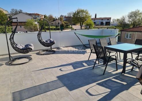 Poreč ist eine Stadt im Herzen der Westküste Istriens. Eine Stadt der Kultur, des Tourismus, des Sports und der Unterhaltung, mehrfach ausgezeichnet für ihre Ordnung und Sauberkeit. Eine Stadt, die auf einzigartige Weise ein reiches kulturelles und historisches Erbe mit den modernsten Annehmlichkeiten eines Top-Touristenziels verbindet. Verwaltungsmäßig ist Poreč das Zentrum der Stadt Poreč, einer lokalen Selbstverwaltungseinheit in der Gespanschaft Istrien, Teil der Republik Kroatien. Die Fläche der Stadt beträgt 142 km2, sie hat etwa 12.000 Einwohner, weitere größere Siedlungen sind Tar, Vabriga, Baderna, Žbandaj, Nova Vas, Fuškulin, Dračevac, Varvari, Červar-Porat. Als größtes Touristenzentrum Kroatiens verfügt Poreč über eine Vielzahl an Unterkunftsmöglichkeiten. In der Nähe von Poreč steht eine Wohnung im ersten Stock mit Dachterrasse und wunderschönem Blick auf das Meer zum Verkauf. Die Wohnung ist nur 7 km von der Stadt Poreč und den ersten Stränden entfernt. Die Wohnung befindet sich im ersten Stock und hat eine Fläche von 70,73 m2 + Oberlicht von 11,53 m2. Die Wohnung besteht aus einer Eingangshalle, einer Küche mit Esszimmer und einem Wohnzimmer mit einem offenen Raumkonzept, das über zwei Glaswände verfügt, die der Wohnung Licht und Blick auf das Meer verleihen. Die Wohnung verfügt außerdem über zwei Schlafzimmer, ein Badezimmer und eine überdachte Terrasse. Die Wohnung verfügt über eine möblierte Dachterrasse mit Strom- und Wasseranschluss sowie verstärkter Ausstattung für einen 80 m² großen Whirlpool. die einen Panoramablick auf das Meer bietet. Die Wohnung ist komplett möbliert und mit hochwertigen Möbeln und Geräten ausgestattet und wird als solche verkauft. Die Wohnung wird über Klimaanlagen beheizt und das Badezimmer verfügt über eine Fußbodenheizung. Zur Wohnung gehört ein Parkplatz, d.h. es passen zwei Autos hintereinander. Eine ideale Immobilie zur Übernahme einer bereits bestehenden touristischen Vermietung oder als Haus für das Familienleben. Sehr geehrte Kunden, die Agenturprovision wird gemäß den Allgemeinen Geschäftsbedingungen www.dux-nekretnine.hr/opci-uvjeti-poslovanja berechnet