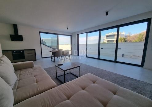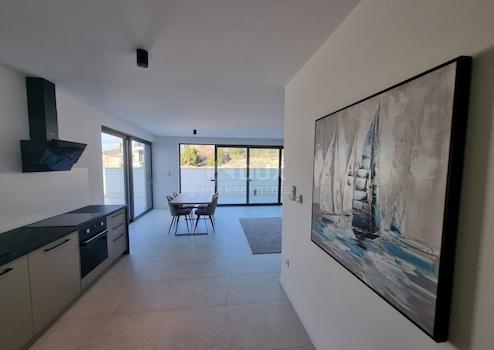 Eine schöne Wohnung mit Pool in einem modernen Neubau mit offenem Meerblick steht zum Verkauf. Für den Bau wurden hochwertige Materialien, Wärmedämmung, Aluminiumschreinerei, Keramik und Holzböden verwendet. Zur Ausstattung gehören eine Alarmanlage und Videoüberwachung sowie eine Ladestation für Elektrofahrzeuge, eine Gegensprechanlage und eine Fußbodenheizung. Energieklasse A+. Die Wohnfläche beträgt 78,3 m2 und besteht aus einer geräumigen Küche mit Esszimmer und Wohnzimmer, zwei Schlafzimmern mit jeweils eigenem Bad und einer separaten Toilette. Das Wohnzimmer öffnet sich zu einer großzügigen Terrasse mit Swimmingpool. Die Wohnung verfügt über zwei Abstellräume mit einer Gesamtfläche von 18,56m2, einen Stellplatz im Garagenbereich von 16m2 und einen Außenstellplatz. Die Wohnung ist klimatisiert und mit modernen Möbeln ausgestattet. Wunderschöne Umgebung, ausgezeichnete und begehrte Lage, 600 m vom Meer entfernt, in der Nähe aller notwendigen Einrichtungen, hochwertige Bauweise sowie luxuriöse und moderne Ausstattung machen diese Immobilie zu einer einzigartigen Gelegenheit auf dem Markt. IMMOBILIEN, DIE AUFMERKSAMKEIT SIND!!! Sehr geehrte Kunden, die Vermittlungsprovision wird gemäß den Allgemeinen Geschäftsbedingungen berechnet. https://www.dux-nekretnine.hr/opci-uvjeti-poslovanja