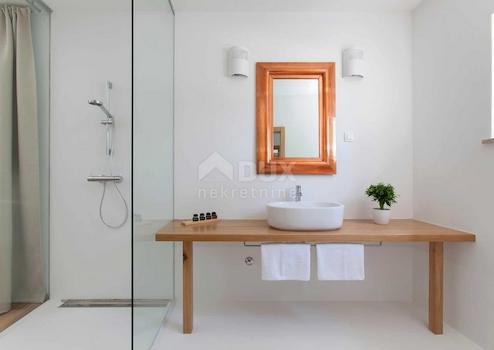 Land An der südöstlichen Küste Istriens, wo grüne Hügel auf das Meer treffen, wo Natur und Erbe zusammenkommen, gibt es zwei kleine Städte ähnlicher Größe, aber mit unterschiedlichen, sich aber gegenseitig ergänzenden Charakteren – Labin und Rabac. Die malerische Stadt Labin erhebt sich auf einem 320 Meter hohen Hügel, nur fünf Kilometer von den weißen Kiesstränden in Rabac entfernt. Labin, das für kurze Zeit zur unabhängigen Republik erklärt wurde, ist eng mit der reichen Geschichte und dem Bergbau verbunden, die diese Region prägten, und ist heute eine faszinierende Stadt voller Widersprüche. alt und neu, Geschichte und Gegenwart, Tourismus und Kunst. Diese wunderschöne, voll ausgestattete Villa liegt in einer idyllischen Umgebung am Fuße des Naturparks Učka, einem Naturpark, der spektakuläre Naturschönheiten bietet. Die Villa liegt außerhalb des bewohnten Gebiets, umgeben von Natur und bietet ihren Eigentümern und Gästen absolute Privatsphäre und Ruhe sowie einen beeindruckenden Blick auf Učka und das weite Čepićko-Feld. Grundmerkmale: • Villenfläche 305 m2 • Poolfläche 36 m2 • Grundstücksfläche: 14.100 m2, davon 3.500 m2 bebaut • 4 Schlafzimmer (eines befindet sich in einem separaten Gebäude) • 4 Badezimmer (eines befindet sich in einem separaten Gebäude), 1 WC Im Erdgeschoss der Villa befindet sich ein geräumiges Wohnzimmer mit einem imposanten verglasten Kamin und Zugang zu einer Terrasse mit Swimmingpool und Whirlpool – eine wahre Oase der Entspannung. Im Erdgeschoss gibt es außerdem eine Eingangshalle, eine Toilette und einen Raum zum Waschen und Trocknen von Kleidung. Von außen gibt es einen Eingang zu einem geräumigen Lagerraum, in dem sich das Heiz- und Kühlsystem befindet. Im ersten Stock befinden sich 3 Schlafzimmer, jedes mit eigenem Bad. Die Schlafzimmer sind geräumig, jeweils 26-28 m2 groß und bieten einen fantastischen Blick auf das umliegende Grün. Das Besondere an dieser Villa ist ein separates Gebäude, das eine schöne Küche mit Esszimmer und ein weiteres Schlafzimmer mit eigenem Bad beherbergt. Diese Anordnung lädt zum Verweilen im Freien neben dem Pool und der Entspannungszone ein und sorgt gleichzeitig für Ruhe und vollkommenen Komfort im Haupthaus. In der Küche gibt es einen großen Kamin/Grill, der Holz und Kohle verbrennt. Die gesamte Villa ist mit Fußbodenheizung ausgestattet, in den Badezimmern sind zusätzlich Rohrheizkörper installiert und in allen Räumen und der Küche sind Ventilatorkonvektoren für zusätzlichen Komfort das ganze Jahr über installiert. Es wurden Vorbereitungen für eine Solarheizung getroffen und kabelgebundenes Internet + WLAN installiert. Im weitläufigen Landschaftsgarten befindet sich ein 4 x 9 Meter großer Überlaufpool, der in Pebble-Tec-Technologie hergestellt und mit einem Wasserheizsystem ausgestattet ist. Neben dem Swimmingpool gibt es auch einen beheizten Whirlpool mit den Maßen 2x2 Meter, der sich auf der überdachten Terrasse befindet und das ganze Jahr über genutzt werden kann. Von der Gesamtgrundstücksfläche von 14.100 m2 sind ganze 3.500 m2 Bauland mit der Möglichkeit einer weiteren Bebauung. Das gesamte Baugrundstück ist von einer neu errichteten traditionellen istrischen Trockenmauer umgeben. Eine Besonderheit des Geländes ist der Bach, durch den in den Winter- und Frühlingsmonaten Wasser aus der Učka fließt. Die Villa ist mit 4 Sternen kategorisiert, als Ferienhaus mit der Möglichkeit, Catering-Dienstleistungen anzubieten. Die Lage, Struktur und der Komfort machen diese Immobilie zu einer idealen Gelegenheit für ein ruhiges Familienleben sowie zu einer Investition zur touristischen Vermietung. Sehr geehrte Kunden, die Agenturprovision wird gemäß den Allgemeinen Geschäftsbedingungen berechnet: www.dux-nekretnine.hr/opci-uvjeti-poslovanja