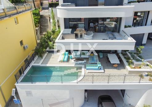 Das exklusive Apartment 1A von 155 m2 befindet sich in einem neuen Gebäude im Herzen von Opatija, nur 200 Meter von der berühmten Hauptstraße und der Küste entfernt. Das neue Gebäude stellt ein einzigartiges Projekt mit einem wunderschönen Panoramablick auf das Meer dar. In einer ruhigen Einbahnstraße gelegen, umgeben von historischen österreichisch-ungarischen Villen, besteht dieses Projekt aus zwei Gebäuden mit insgesamt 23 Luxuseinheiten, darunter zwei Tiefgaragen. Apartment 1A besteht aus einem Flur, drei Schlafzimmern, von denen jedes über ein eigenes Badezimmer verfügt, einem Wohnzimmer mit Küche und Esszimmer sowie einer Terrasse mit einem privaten Pool von 19 m². Zum Eigentum an der Wohnung gehören zwei Garagenstellplätze sowie ein Abstellraum. Die Wohnung ist komplett mit neuen, hochwertigen Möbeln möbliert und bezugsfertig. Es wurde vom besten lokalen Innenarchitekten BABALOO Design entworfen. Die Wohnung ist mit hochwertigen Materialien ausgestattet, darunter Fußbodenheizung und ein SAMSUNG-Fan-Coil-System in allen Räumen. Die Außenschreinereiarbeiten bestehen aus dem ALU-Material SCHUCO, während die Sanitärartikel aus der ALICE NUR-Kollektion ausgewählt wurden und die Armaturen von GESSI VIA TORTONA/VIA MANZON stammen. Dieses einzigartige Projekt bietet ein Höchstmaß an Komfort und Exklusivität mit einer gemeinsamen Rezeption und einem Concierge-Service für das gesamte Gebäude. Darüber hinaus steht den Mietern im Inneren des Gebäudes ein gemeinsamer Wellnessbereich mit einem 12-Meter-Schwimmbecken, drei Arten von Saunen und einem privaten Fitnessstudio zur Verfügung. Eine wirklich schöne und wertvolle Immobilie mitten im Zentrum von Opatija, die eine echte Rarität auf dem Markt darstellt und daher eine ideale Investitionsmöglichkeit darstellt. Sehr geehrte Kunden, die Agenturprovision wird gemäß den Allgemeinen Geschäftsbedingungen berechnet: www.dux-nekretnine.hr/opci-uvjeti-poslovanja