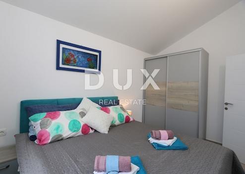 INSEL KRK, Soline Bay – Zweizimmerwohnung mit Blick auf das Meer Diese Wohnung befindet sich im zweiten Stock in einem schönen neuen Gebäude, etwa 350 Meter vom Meer entfernt. Es hat 62 m2 und wird komplett möbliert verkauft. Es besteht aus zwei Schlafzimmern, einer Küche, einem Esszimmer und einem Wohnzimmer, das auf einen großen Balkon mit herrlichem Blick auf das Meer führt. Die Wohnung ist klimatisiert. Zur Wohnung gehören zwei Parkplätze. Auf der Ostseite der Insel Krk liegt die Gemeinde Dobrinj mit dem gleichnamigen Zentrum. Dobrinj liegt auf einem etwa 200 Meter hohen Hügel und ist eine der mittelalterlichen Burgen, die in der Vergangenheit Zentren der Alphabetisierung waren. Dobrinjština war jahrhundertelang eine äußerst landwirtschaftlich geprägte Region. Auch die Tierhaltung und der Olivenanbau sowie die Ausbeutung der Waldressourcen waren vertreten. Der Ort ist auch für seine farbenfrohen Trachten, Folkloreveranstaltungen, die Sopela-Schule (Krks Blasinstrument) und die traditionelle lokale Küche bekannt. In diesem Inselzentrum dominieren autochthone Steinhäuser und enge Steingassen, die an die Vergangenheit erinnern. Nicht weit von Dobrinje entfernt befindet sich die Biserujka-Höhle, die durch ihre Schönheit und interessante Felsformen begeistert. Es ist die einzige Höhle auf der Insel, von der es mehr als 50 gibt, die für den Empfang von Besuchern konzipiert ist. Der Legende nach wurde die Höhle nach dem darin gefundenen Schatz, der einheimischen Piraten gehörte, Biserujka (Perle) genannt. Sehr geehrte Kunden, die Agenturprovision wird gemäß den Allgemeinen Geschäftsbedingungen www.dux-nekretnine.hr/opci-uvjeti-poslovanja berechnet