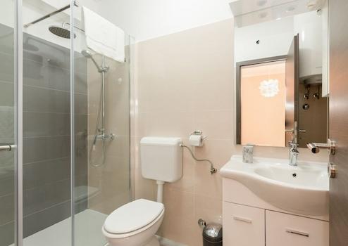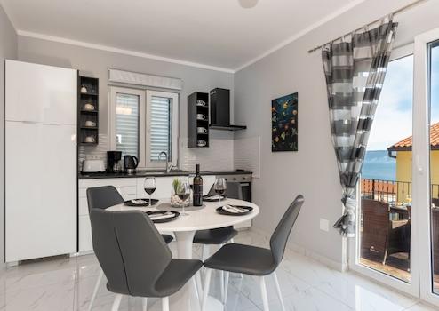 An der südöstlichen Küste Istriens, dort, wo grüne Hügel auf das Meer treffen, wo Natur und Erbe zusammenkommen, liegen nur fünf Kilometer voneinander entfernt zwei Städte ähnlicher Größe, aber mit unterschiedlichen Aber gegenseitiger komplementärer Charakter - Labin und Rabac. Rabac wird wegen seiner weißen Kiesstrände, der üppigen mediterranen Vegetation und dem kristallklaren Meer auch die Perle der Kvarner-Bucht genannt. Einst ein kleines Fischerdorf, ist Rabac heute ein attraktives Touristenziel, das in einem Netz farbenfroher Straßen eine Fülle kultureller Veranstaltungen verbirgt. Die grüne Umgebung von Rabac und das malerische Hinterland laden das ganze Jahr über zu Abenteuern, Forschung und Erholung ein. In der Nähe von Labin, in einer kleinen Stadt am Meer, befindet sich dieses Haus mit zwei separaten Wohnungen. Im Erdgeschoss befindet sich eine kleinere Wohnung mit zwei Schlafzimmern, jeweils mit eigenem Bad, sowie einer Küche mit Esszimmer und Wohnzimmer. Im Obergeschoss befindet sich eine größere Wohnung mit drei Schlafzimmern, Bad, WC, Küche mit Esszimmer und Wohnzimmer. Die Heizung ist klimatisiert, die Wohnungen sind komplett ausgestattet und möbliert. Die Terrasse bietet einen wunderschönen Blick auf das Meer und die Insel Cres. An der Seite des Hauses befindet sich eine Terrasse mit Grill, die in den warmen Sommermonaten zum geselligen Beisammensein und Entspannen einlädt. Die Entfernung zu den Stränden und zum Meer beträgt nur 500 Meter. Eine ideale Immobilie für ein ruhiges Familienleben oder für eine Investition in ein bereits etabliertes touristisches Vermietungsunternehmen. Sehr geehrte Kunden, die Agenturprovision wird gemäß den Allgemeinen Geschäftsbedingungen berechnet: http://www.dux-nekretnine.hr/opci-uvjeti-poslovanja