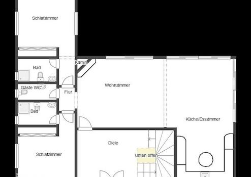 - Kellergeschoss mit Küche und großem Wohnzimmer