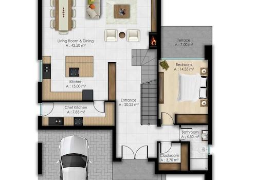 Bei diesem Projekt stehen zwei Varianten von Häusern zur Auswahl. Die erste Variante, Typ A/B, bietet eine Gesamtwohnfläche von 234,31 m², aufgeteilt auf das Erdgeschoss mit 105,78 m² und das Obergeschoss mit 128,53 m². Die zweite Variante, Typ C/D, verfügt über eine Gesamtwohnfläche von 251,70 m², aufgeteilt auf das Erdgeschoss mit 100,15 m² und das Obergeschoss mit 151,55 m².