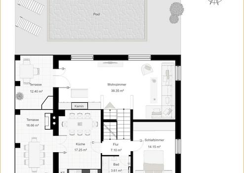 Ein Highlight dieser Immobilie ist der wunderschön angelegte Garten, der zur Nutzung einlädt. Hier können Sie entspannte Stunden auf der Terrasse verbringen oder im eigenen Swimmingpool eine erfrischende Abkühlung genießen.