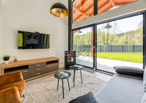 Luxuriöses, neu erbautes, freistehendes Wochenendhaus mit einer Gesamtfläche von 124 m2 auf einem Grundstück von 2000 m2.