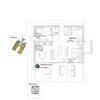 Das Haus besteht aus einem Wohnzimmer, einer Küche, einem Esszimmer, 2 Schlafzimmern, einem Badezimmer mit Toilette und einer Gästetoilette.