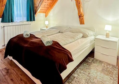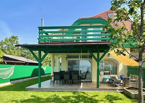 Es verfügt über 4 Schlafzimmer und Dachgeschoss, 2 Bäder, 3 Toiletten, geräumiges Wohnzimmer und Esszimmer, Einbauküche, komfortable überdachte Terrasse mit Blick auf den Plattensee!