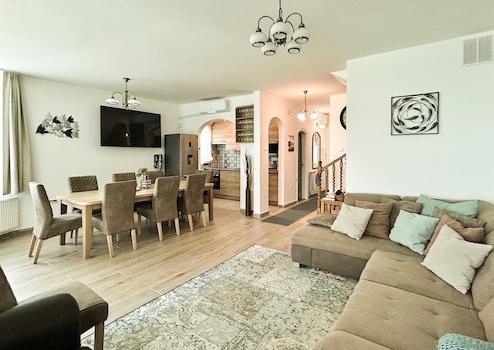 A ház új kiépítésű fűtés rendszerrel rendelkezik, klimatizált, egész évben használható.