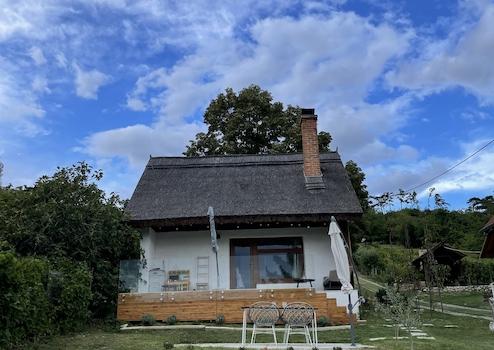 In Vonyarcvashegy, 65 qm renoviertes Wochenendhaus mit Reetdach - Ferienhaus mit herrlichem Panoramablick auf den Plattensee und den St. Michaelsberg. Das Haus wurde im Jahr 2019 renoviert, die gesamte Sanitärinstallation wurde erneuert, das elektrische Netz wurde ebenfalls erneuert. Die Immobilie verfügt über eine elektrische NordArt-Heizung, die das ganze Jahr über genutzt werden kann und per Telefon gesteuert werden kann.
