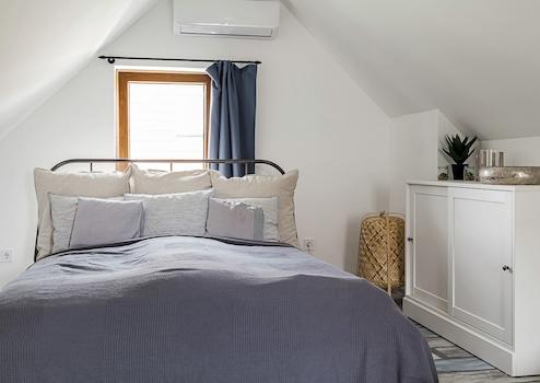 Von der 20 qm großen Terrasse mit Panoramablick auf den Balaton gelangt man in den 22 qm großen Wohnbereich, von dem aus man ebenfalls einen herrlichen Panoramablick genießen kann. Das Wohnzimmer ist mit einem Kachelofen zum Heizen ausgestattet. Ein kleiner Flur führt zum Badezimmer mit Dusche und Waschmaschine. Im Erdgeschoss befindet sich auch die Küche mit einer kleinen Tür zur Terrasse auf der Rückseite und ein halbes Zimmer mit einem Bett für zwei Personen. Im Obergeschoss befindet sich ein Schlafzimmer. Ein Parkplatz steht auf dem privaten Grundstück zur Verfügung.