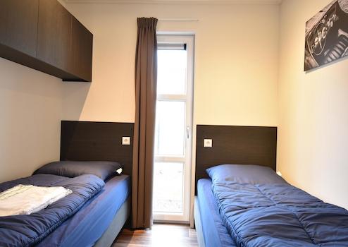 Dieses Schlafzimmer ist ein bisschen kleiner. Es hat 2 einzelne Boxspringbetten und 2 Schränke zum Verstauen Ihrer Sachen.