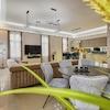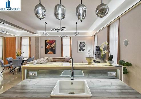 exklusiver Wohn- und Essbereich mit offener Küche