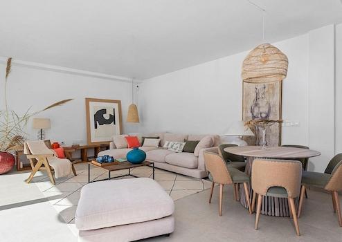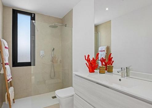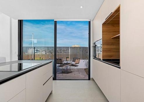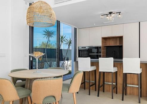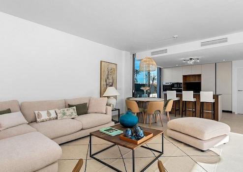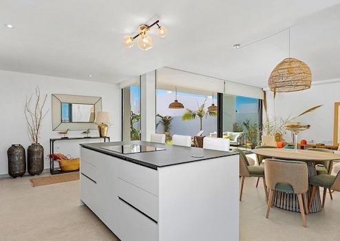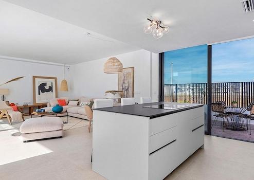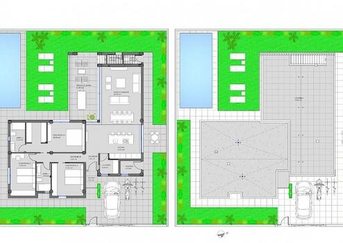 Dier Raumfläche ist vollständig anpassbar, die aktuellen Pläne ermöglichen 3 Schlafzimmer und 2 Bäder. Es gibt einen großen, offenen Wohn-/Essbereich der sich zur Terrasse und den Poolbereich öffnet.