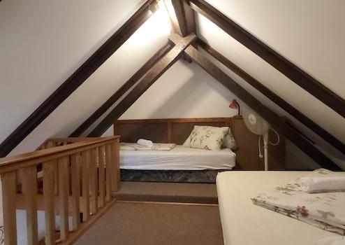 Két épület vályog falazatú nád fedéssel, egy tégla cserépfedéssel. A tetőtéri szobákban klíma került felszerelésre.