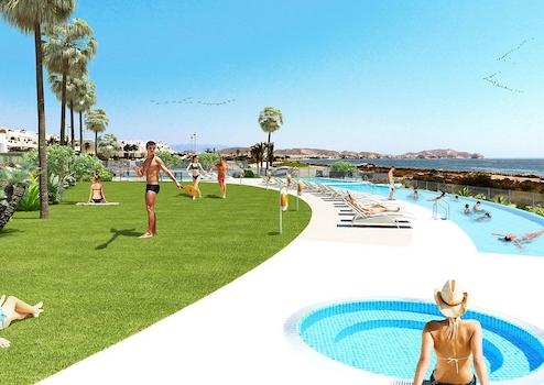 Die Wohnanlage liegt direkt am Strand, in einem privilegierten Gebiet an der Küste von Almeria. Es ist eine ruhige Wohngegend, die aber alle Dienstleistungen bietet, die man braucht. Mit seinem schönen Design in Weiß, das an ein andalusisches Dorf erinnert, ist dieser Komplex Teil eines Wohngebiets mit eigenen Restaurants, einem Supermarkt und einem Sportzentrum mit einem Fitnessstudio und Leichtathletikanlagen. Bei der Entwicklung dieser Wohnanlage wurde besonderes Augenmerk darauf gelegt, die öffentlichen Bereiche zugänglicher zu machen und die Ausstattung der Wohnungen mit größeren Außenbereichen, Veranden und Solarien zu verbessern.