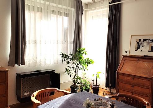 In den 70-iger Jahren wurde das Mehrfamilienhaus in Massivbauweise erstellt. Der Balkon, der vom Wohnzimmer und vom Schlafzimmer aus begehbar ist, liegt in süd-östlicher Richtung. .