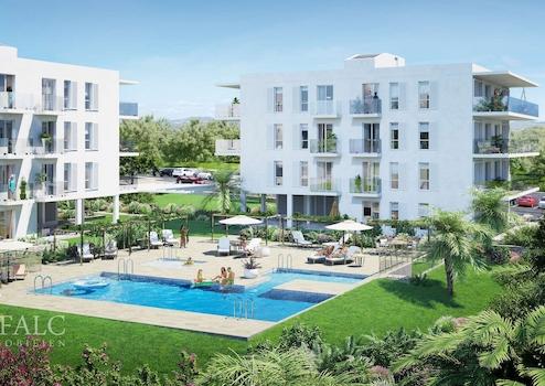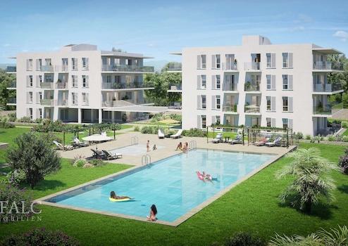 Die Erdgeschosswohnungen verfügen über eine Terrasse sowie einen kleinen Garten. Ein PKW-Stellplatz gehört zu jeder Wohnung. Gemeinschaftsgarten mit 2 Pools stehen allen Eigentümern zur Verfügung.
