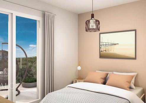 Zu jedem Apartment gehört ein Pkw-Stellplatz. Die dargestellte Möblierung dient nur als Dekorationsbeispiel.