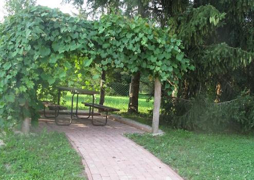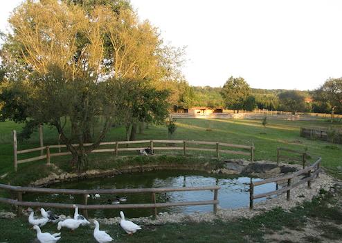Ein kleiner Teich befindet sich hinter den Häusern bei der Einfahrt auf das Grundstück. Das Grundstück bietet fast alles, was das Auge begehrt. Die Obstsaison beginnt mit Erdbeeren und endet mit Himbeeren von den fast 30 Obstbäumen. Auch der chemiefreie Bio-Küchengarten "Fox Garden" bietet fast alles Gemüse, was eine Familie braucht.
