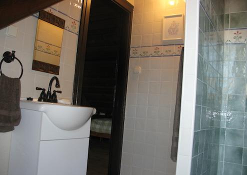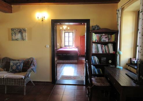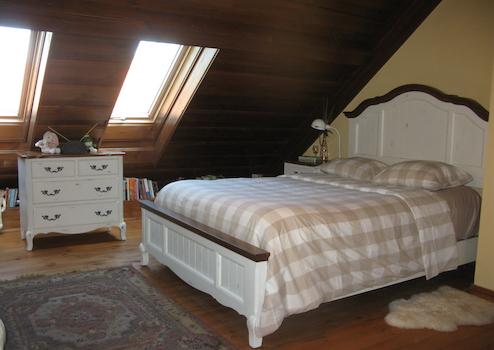 Das Dachgeschoss verfügt über einen Flur, zwei große Zimmer und zwei Duschen + Toiletten. Im oberen Teil des Nebengebäudes befindet sich ein großes Gästezimmer + Bad, im unteren Teil eine Garage, eine Sommerküche, ein Holzlager.