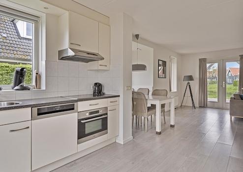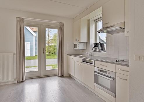 Die Küche ist offen mit dem Wohnzimmer verbunden, so dass Sie bei der Zubereitung einer Mahlzeit immer in Kontakt mit Ihrer Gesellschaft bleiben. Die große Küche ist komplett ausgestattet. Die Küche ist in einer hellen Farbe gehalten und hat eine Arbeitsplatte in einer kontrastierenden Farbe. In der Küche finden Sie: eine Edelstahlspüle, einen 4-Flammen-Gasherd, einen Edelstahl-Dunstabzug mit Beleuchtung, einen Kühl-/Gefrierschrank, einen Backofen, eine neue Mikrowelle und einen neuen Geschirrspüler. Auf dieser Seite befinden sich auch Gartentüren, die Sie öffnen können, während Sie Ihre Mahlzeit zubereiten.