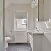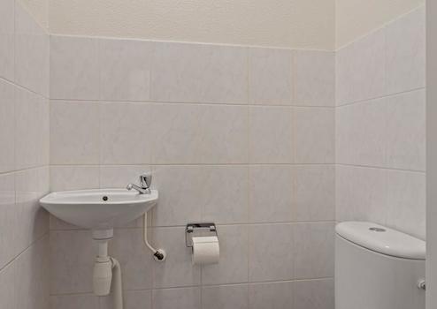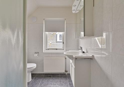 Dieser Waschraum hat helle Wandfliesen und dunkle Bodenfliesen, was ihm ein schönes Aussehen verleiht. In diesem Raum finden Sie die zweite Toilette, eine Duschkabine, ein Waschbecken und eine Badewanne. Unter dem Waschbecken befindet sich ein Schrank, in dem zum Beispiel Handtücher aufbewahrt werden können, und über dem Waschbecken ist ein Spiegelschrank mit Beleuchtung, der natürlich ideal ist, um sich zu rasieren, zu schminken oder die Haare zu kämmen.
