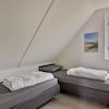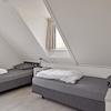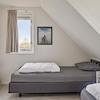 Zwei Boxspringbetten und ein schmaler Kleiderschrank befinden sich in diesem Schlafzimmer. Außerdem gibt es ein Dreh-Kipp-Fenster, durch das viel frische Luft hereinkommt.