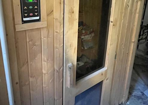 Im Untergeschoss von 10 Quadratmetern befinden sich derzeit die Infrarotsauna, eine Dusche und die Gastherme, im überdachten Außenbereich im Erdgeschoss neben dem Haus finden Freizeitaktivitäten statt, es gibt aber auch Abstellmöglichkeiten für Fahrräder, Roller und andere sind auch hier entstanden.