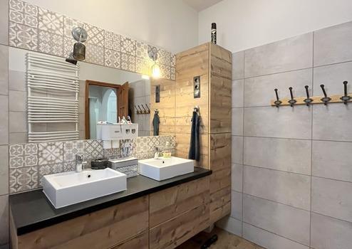 Zuhanyzóval ellátott fürdőszoba külön mellékhelyiséggel