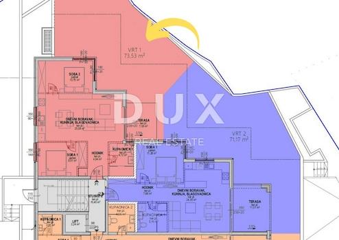 Exklusiv im DUX-Angebot bieten wir eine Wohnung in einem wunderschönen Neubau unter der neuen Straße im Zentrum von Opatija an. Dieses Apartment befindet sich in einem neuen Gebäude mit Garage und ist stolz auf seine einzigartige Lage im Herzen der Stadt, nur 200 Meter von der Hauptstraße von Opatija oder der Promenade Lungomare am Meer entfernt. Diese strategische Lage sorgt für eine friedliche und ruhige Umgebung und bietet eine Oase der Ruhe inmitten des geschäftigen Stadtzentrums. Apartment S1 besteht aus einem Wohnzimmer, zwei Schlafzimmern, einem Badezimmer, einer privaten Terrasse und einem 74 m² großen PRIVATEN Garten! Was dieses Projekt von anderen Neuentwicklungen in der Stadt unterscheidet, ist die Integration von Jugendstildetails. Durch sorgfältige Beachtung des architektonischen Stils und der Details ist ein Wohnraum entstanden, der perfekt zum aristokratischen Charme und der Eleganz passt, die die Stadt Opatija auszeichnen. Jeder Aspekt des Designs wurde sorgfältig ausgearbeitet, um eine harmonische Balance zwischen zeitgenössischem Lebensstil und der zeitlosen Anziehungskraft klassischer Architektur zu schaffen.