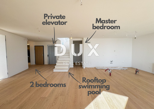Wir präsentieren ein einzigartiges Penthouse im Zentrum von Opatija mit großzügiger Dachterrasse und Pool, mit drei Balkonen, nur 150 m entfernt Die Luftlinie vom Meer entfernt. Die Wohnung mit einer Fläche von 334,82 m3 ist mit Luxus und Funktionalität verbunden und besteht aus einem offenen Wohnzimmer mit eleganter Küche und Esszimmer – ein perfekter Ort für Treffen mit Familie und Freunden. Das Hauptschlafzimmer mit eigenem Bad, Sauna und Ankleidezimmer ist ebenfalls ein außergewöhnlicher Vorzug dieser luxuriösen Wohnung, und die anderen beiden Schlafzimmer verfügen über ein Ankleidezimmer und eigene Badezimmer und bieten somit Privatsphäre und Komfort für alle Bewohner der Wohnung. Genießen Sie die frische Luft und den wunderschönen Blick auf das Meer und die Kvarner-Bucht auf der offenen überdachten Terrasse von 28 m2, die vom Wohnzimmer und dem Hauptschlafzimmer aus zugänglich ist. Die beiden anderen Schlafzimmer haben ebenfalls Zugang zu einem kleinen Balkon von 4,58 m2. Eine spektakuläre Dachterrasse von 115,03 m2 und ein Swimmingpool von 15 m2 bieten den perfekten Ort zum Entspannen, Unterhalten und Genießen des Panoramablicks auf die Umgebung. Darüber hinaus bietet diese Immobilie höchsten Komfort mit Fußbodenheizung und Daikin-Wärmepumpe, hochwertiger Schuco ALU-Zimmerei, Fliesen namhafter italienischer Hersteller sowie erstklassigem Parkett. Der Raum ist mit einbruchhemmenden Türen, einer Alarmanlage und einer Video-Gegensprechanlage gesichert. Ein großer Vorteil dieses Penthouses ist der Aufzug. Mit drei großen Garagenstellplätzen ist Ihr Auto immer sicher, während ein zusätzlicher Abstellraum für Organisation und Lagerung sorgt. Dieses exklusive Anwesen befindet sich in einer fantastischen Lage unter Nova Cesta, nur 150 Meter vom Meeresufer entfernt und gewährleistet die perfekte Balance zwischen Ruhe und Nähe zu allen Annehmlichkeiten. Das Zentrum von Opatija ist nur wenige Gehminuten entfernt und der Strand Slatina und Lido liegen in der Nähe der Wohnung, während alle dazugehörigen Einrichtungen wie die Lungomare-Promenade, die Opatija-Sommerbühne und das Gervais-Kulturzentrum ebenfalls nur wenige entfernt sind Minuten zu Fuß entfernt, sodass Sie nicht mit dem Auto fahren müssen. Verpassen Sie nicht die Gelegenheit, diese unglaubliche Immobilie im Zentrum von Opatija zu kaufen. Sehr geehrte Kunden, die Vermittlungsprovision wird gemäß den Allgemeinen Geschäftsbedingungen berechnet. www.dux-nekretnine.hr/opci-uvjeti-poslovanja