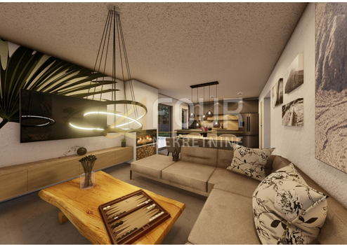 Im Erdgeschoss des Hauses wird es ein geräumiges Wohnzimmer mit gemütlichem Kamin, verbunden mit einer offenen Küche und einem Esszimmer, sowie ein Badezimmer und einen Abstellraum geben.