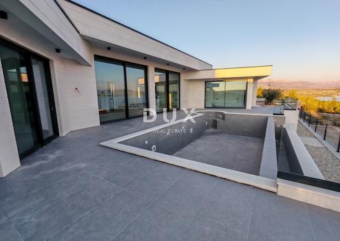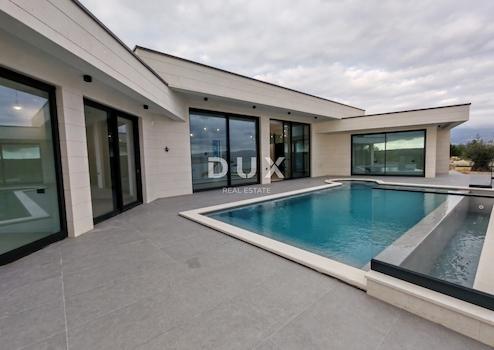 Willkommen in der Oase eleganten Komforts und zeitgenössischen Stils, wo außergewöhnliche Bauweise auf die endlose Schönheit der Adria trifft. Dieses luxuriöse einstöckige Haus in Posedarje liegt an der Küste und bietet eine einzigartige Kombination aus Komfort, Eleganz und spektakulärer Aussicht. Jedes Detail dieser Villa wurde sorgfältig entworfen, um das ultimative Erlebnis von Stil und Komfort zu bieten. Mit seinen exquisit konstruierten Stahlbetonwänden ist diese Residenz ein Synonym für Stärke und Sicherheit. Die mit handbehauenem Naturstein verkleideten Zaunwände sorgen für einen Hauch traditioneller Eleganz, der sich perfekt in die Naturlandschaft einfügt. Die Tischlerei von Schuco sorgt für optimale Beleuchtung und Belüftung, während das geräumige Wohnzimmer mit einem unglaublichen Blick auf das endlose Blau des Meeres zum Entspannen einlädt. Der beheizte Infinity-Pool mit Whirlpool vermittelt ein Gefühl von Luxus und Privatsphäre, während die Fußbodenheizung des gesamten Hauses für angenehme Wärme in allen Räumen sorgt. Die mit natürlichem Brač-Stein verkleidete Fassade strahlt endlose Eleganz und Qualität aus, während die raumhohen Schiebetüren von Schuco jedem Raum ein Gefühl von Geräumigkeit und Licht verleihen. Diese Villa bietet nicht nur Luxus, sondern auch Funktionalität und Sicherheit. Der private Garten und der Pool bieten eine Oase der Ruhe und Entspannung, während gesicherte Parkplätze und Videoüberwachung für vollständige Sicherheit Ihres Fahrzeugs und Ihres Zuhauses sorgen. Mit vier geräumigen Schlafzimmern, jedes mit eigenem Bad, bietet dieses einstöckige Haus den perfekten Raum für die ganze Familie zum Genießen und Entspannen. Mit einer Wohnfläche von 204 Quadratmetern und einem großzügigen Garten von 808 Quadratmetern bietet diese Villa eine unglaubliche Gelegenheit für ein Traumleben entlang der Adriaküste. Lassen Sie sich von diesem einstöckigen Haus in Posedarje mit seiner Schönheit und seinem Komfort verzaubern und schaffen Sie so einen perfekten Ort, um das Leben am Meer zu genießen. Im Bau, geplante Fertigstellung bis Mai 2025. Sehr geehrte Kunden, die Vermittlungsprovision wird gemäß den Allgemeinen Geschäftsbedingungen berechnet. https://www.dux-nekretnine.hr/opci-uvjeti-poslovanja