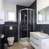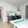 Im Erdgeschoss des Hauses befinden sich drei Wohneinheiten: zwei Apartments mit jeweils 50 m2 Fläche mit zwei Schlafzimmern und einem Wohnzimmer sowie ein Studio-Apartment mit einer Fläche von 20 m2.